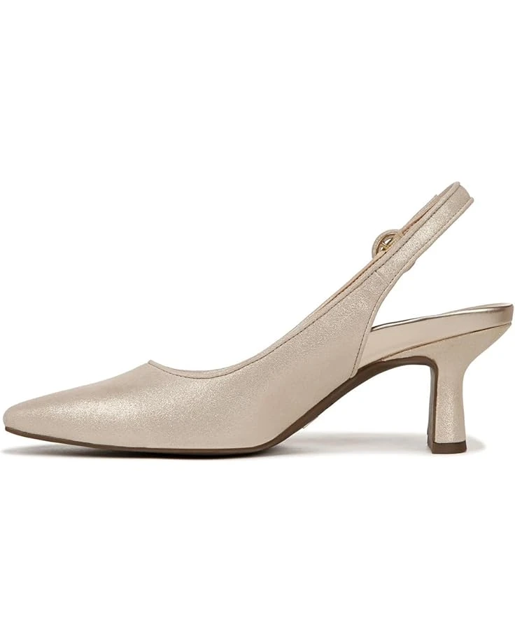This is a beautiful shoe and the gold color is very subdued and neutral. Unfortunately, the shoe hits the bone at the base of my big toe and caused pain. I tried them on twice and wore them for only a couple minutes at home but they were too painful. I had to return them.